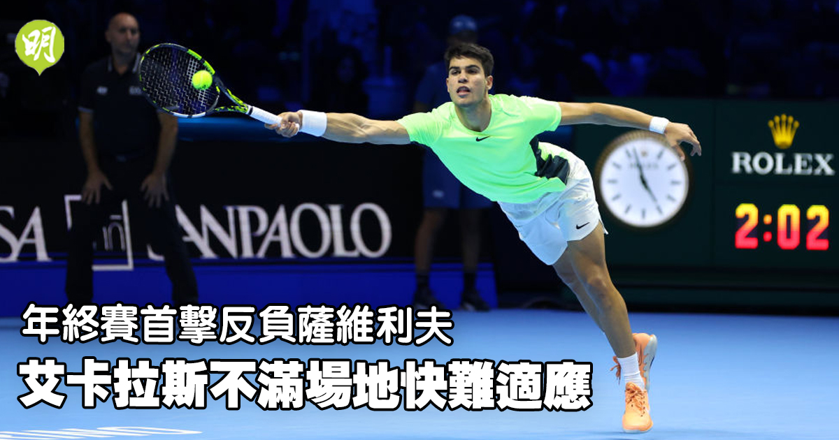 在意大利舉行的世界男子職業網球聯會(ATP)年終賽今晨(14日)完成紅組首輪賽事,其中2號種子的西班牙籍新星卡路士艾卡拉斯,在領先一盤下反負7號種子的德籍好手阿歷山大薩維利夫,各項賽事吞下三連敗,他賽後罕有批評場地過快,「令人難以適應」。