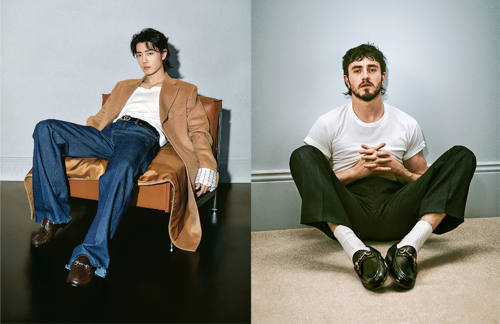 今年是Gucci Horsebit 1953馬銜扣loafer誕生70周年,找來全球品牌大使肖戰、演員兼品牌大使Paul Mescal擔任代言人。青靚白淨的肖戰固然官仔骨骨,半躺半坐在椅子上顯得慵懶時尚,另一邊廂滿臉鬚根的Paul Mescal 以T恤配黑褲,則顯得不覊浪蕩,兩者均展現出鞋款的時尚可塑度。●