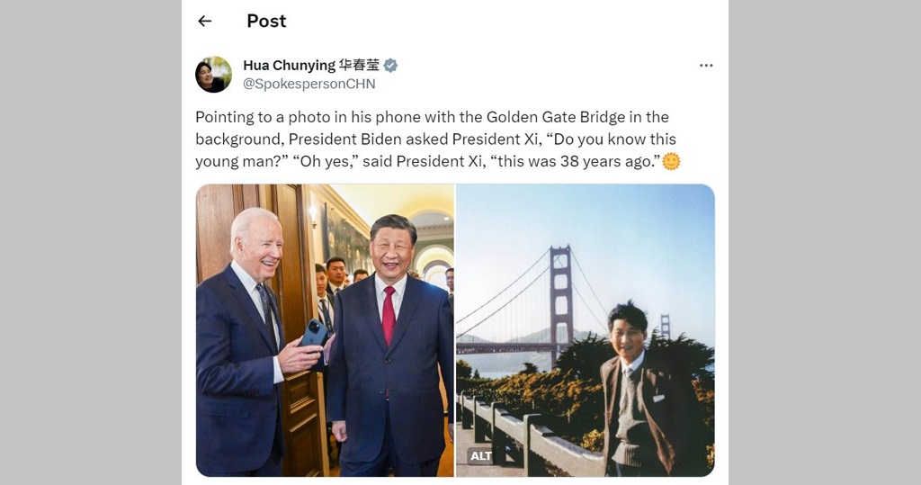 即時兩岸 拜登展示舊照問「認識這位年輕人嗎?」 習近平:是我38年前 (13:32) 發佈於 2 年 前 2023 年 11 月 16 日 By 明報 「習拜會」後,國家主席習近平在費羅麗莊園出席美國總統拜登舉行的宴會。據新華社描述,作為東道主,拜登在宴會廳門口迎候,他取出一部手機,用手指在屏幕上輕輕滑動,像在尋找什麼。當習近平走近,拜登舉起手機問他:「你認識這位年輕人嗎?」習近平隨即回應說,「認識啊,這是我38年前。」 拜登在手機上展示的是1985年習近平擔任河北省正定縣委書記時訪問三藩市的一張照片。拜登說:「你一點都沒變!」現場頓時響起一陣歡笑聲。在輕鬆友好氣氛中,兩名領導人一起步入宴會廳。(新華社) 相關文章:中美角力拜登編輯推介習拜會習近平 Up Next 四川省政協原副主席楊克寧被查 (00:09) 不要錯過 國民黨民眾黨共識:民調定「藍白合」 11月18日公布結果 (14:24) 繼續閱讀 贊助商 猜你喜歡 瞻仰葉劍英 稱靠革命家打江山 習促粵港澳加強立法執法司法協作 梅州廣州調研 着廣東發揮灣區主力軍作用 美情報反映以軍內部質疑炸加沙涉戰爭罪 福建艦入列 習試按電磁彈射 中國海軍邁入3航母時代 中國暫停對美加徵24%關稅一年 (00:49) WSJ:美幕僚高官齊反對習特會談晶片 憂出口晶片損國安 貝森特:或2年後Blackwell可售華