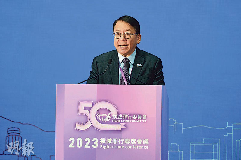 【明報專訊】政務司長陳國基昨表示,希望滅罪會和分區滅罪會「做到」和「做好」三大角色,包括「國家安全守護者」、「地區治理促進者」及「與時並進倡導者」,提到日常只要有小小的社會議題,反中亂港者便立即大肆抨擊及大造文章,着社會各界「高度警惕、堅決反對、直斥其非、以正視聽」;又指一些外國政客和外部勢力至今仍死心不息,反中亂港者仍蠢蠢欲動,企圖通過詆譭、抹黑,甚至卑劣干預,破壞本港法治及繁榮穩定。特首李家超則指,不應忘記2019年「黑暴」、「港版顏色革命」是「一響警鐘」,時刻提醒着「黑暴」隨時捲土重來,軟對抗仍無日無之,故本港在爭取高質量發展的同時,一定要時刻居安思危。