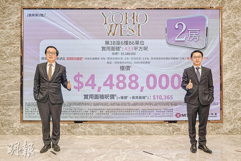 YOHO WEST均呎1.09萬 低去年同區兩成 首批280伙 1房折實299.96萬入場