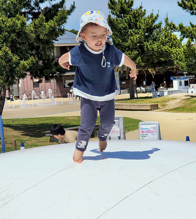 在彈網上跳躍時的反作用力,可以幫助孩子了解自己身體在空間中的位置(右圖)。這種稱為本體感覺的信息,對於學習如何協調身體的不同部位非常重要。跳彈網既有趣又有用,如果沒有彈網,在安全情况下可以考慮在睡牀或沙發上練習。