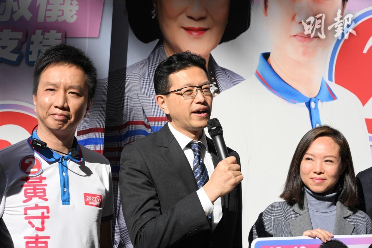 距離區議會選舉投票日不足一個月,灣仔區「5爭2」競爭激烈,同區有前亞視公關及宣傳科高級經理的新民黨候選人黃守東,及代表自由黨的無綫藝員宋芝齡參戰,令該區備受矚目。黃守東今(21日)於灣仔舉辦宣傳車啟動儀式,新民黨主席葉劉淑儀、副主席容海恩、執行委員陳家珮及中央委員何敬康到同場出席。另外,工聯會會長吳秋北及香港島各界聯合會長薛博然等地區社團人士亦到場支持。