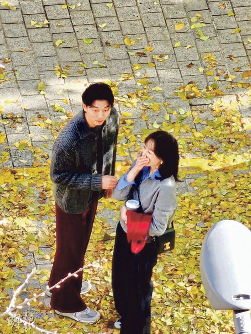 【明報專訊】影視串流平台Netflix今年7月宣布開拍韓劇《The Trunk》,請來《鬼怪》孔劉與《為何是吳秀才?》徐玄振主演,視帝視后首度合作令人期待。昨日有網民「野生捕獲」二人在街頭拍戲,令新劇造型首度曝光。孔劉與徐玄振分別穿著灰色外套,以情侶裝姿態站在黃葉遍地的公園對談,另有多名臨時演員扮成路人,跟他倆擦身而過。有關「劇照」隨即在社交媒體瘋傳,網民大讚二人外形相襯。