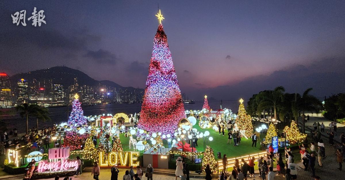 旅發局「香港繽紛冬日巡禮」今日(24日)至2024年1月1日舉行,西九文化區藝術公園海濱草坪變身聖誕小鎮。聖誕小鎮主角「巨型聖誕樹」高逾20米(逾6層樓高),會掛滿幻彩燈飾,樹頂有巨型閃耀五角星點綴。聖誕小鎮每日下午5時亮燈,今日首天於晚上7時開放讓公眾入場。明報電子平台組記者以短片帶大家率先睇繽紛聖誕樹。
