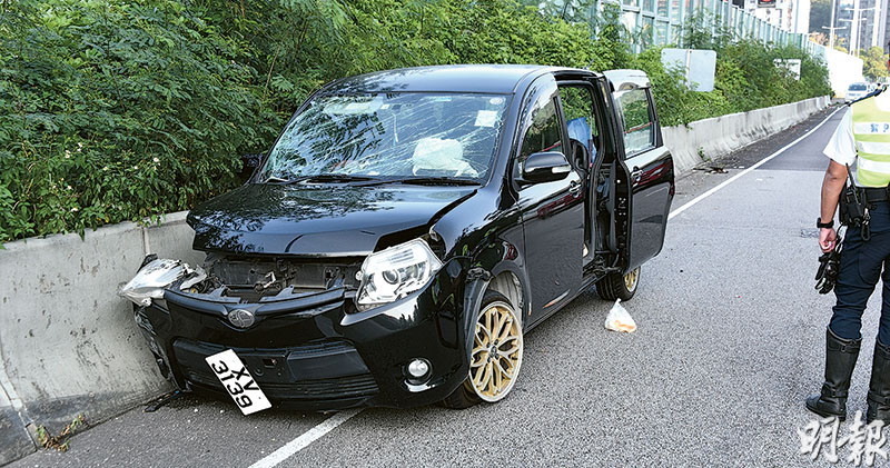 【明報專訊】一輛私家車昨午沿大埔吐露港公路行駛時失控撞壆,後座趟門彈開,外傭及8個月大少主拋出車外。據悉,男嬰一度失去蹤影,其後在路中花槽尋回。全車5人受傷,拋出車外兩人傷勢較重。駕車的男嬰父親涉嫌危險駕駛被捕。