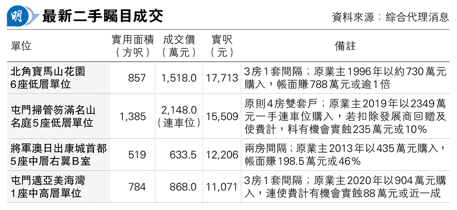 綜合上述3宗成交,譚伯榮今年沽出柏傲山3伙共套現7720.8萬元,合共實蝕約647.6萬元。