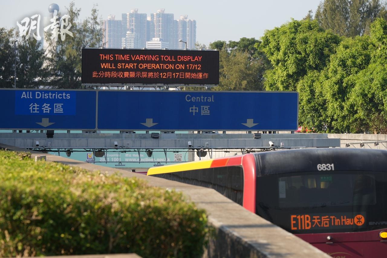另外,顯示屏僅以圖示代表私家車、電單車、的士及商用車4類車種,陳恒鑌指理解如文字表達或需中英並茂,版面或太複雜,支持僅以圖示說明,但認為私家車及商用車的圖案設計可改善,令駕駛者可更易分辨。他又建議,由於商用車及的士日後不論何時行經三隧均全日劃一收費50元及25元,顯示屏上僅私家車及電單車收費會有實時變動,私家車及電單車收費的字體應更大,方便駕駛者掌握資訊。