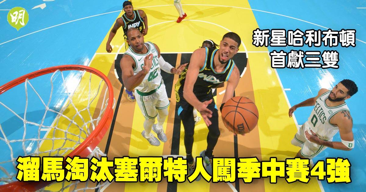 印第安那溜馬在首屆NBA季中錦標賽延續神奇之旅,今(5日)於8強有新星哈利布頓取得職業生涯首個「三雙」,全隊7人得分上雙下,在主場以122:112淘汰常規賽東岸一哥的波士頓塞爾特人,率先殺入4強。