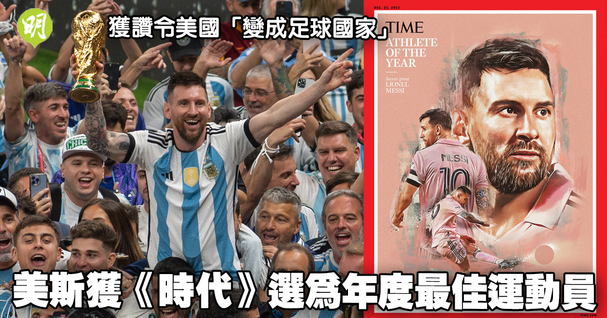 美斯一年前帶領阿根廷隊在卡塔爾奪得世界盃冠軍,今夏卻與PSG不歡而散,其後改投國際邁阿密交出上陣14次入11球的佳績,因傷無緣領軍後上打入美職季後賽,卻最終仍無阻他早前八奪金球獎。《時代》雜誌對美斯高度評價,「他投入美職,將看似不可能的事情變成事實,也將美國變成足球國家」。該雜誌又指,美斯赴美帶動比賽入座率,門票、商品銷售量和收視率均飆升,又補充謂其「地標」戰當日,取得美職獨家轉播權的Apple TV的訂閱數激增11萬,較之前一日暴升17倍。