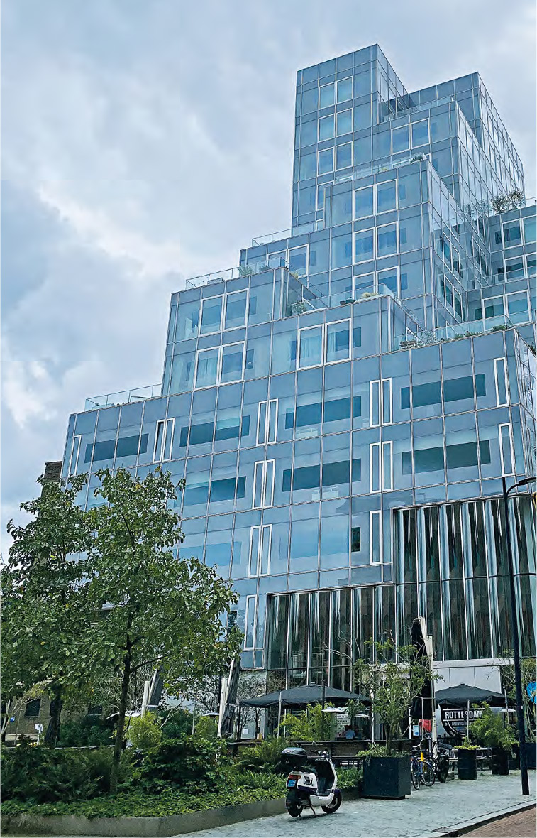 鹿特丹現今的城市景觀,主要由戰後建築及規劃構成。OMA在70年代於此地起家,事務所不少經典案例也獻給當地,包括這艘「添馬艦」。不過,英國《衛報》專欄作家數年前便形容,這幢建築物是一件不完美的獻禮(a flawed gift)。這原為公私合營項目,因此才有公共服務元素,而樓上設有住宅單位,原意是以可負擔的價格出售(affordable units)。然而方案獲選後兩年,挑選承建商後,市政府卻因成本問題將發展主導權讓給私人發展商,擱置遷入市政服務,住宅項目也改為以市場價格出售,填補政府撤資帶來的額外成本。方案落成時,部分地面空間改為博物館用途,然而博物館在2020年被遷往別處,以致今天地面層成為門可羅雀的公共空間。此外,或許受後疫情時代影響,樓上辦公空間也人迹罕至,似乎未有太多租戶。