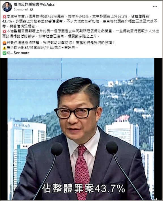 假專頁冒「反詐騙中心」 盜鄧炳強相fb賣廣告