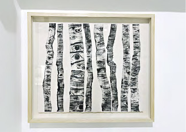 走落12樓,有香港地區出版圖書館「臨時庫存」,進內可閱讀社區報,包括記錄谷埔歷史文化的《谷報》、深水埗《深噏》等。小小的館,蘊藏大量各區故事。10樓的「一九九九藝術空間」正有區華欣「跳舞草亂舞」個展。除了版畫與錄像,角落堆起一小座沙。看看跳舞草與傳訊石,錄像裏的人乘車,有海,有石頭,牆內也有牆,她用另類方法隔牆耳語,接通另一個她。大概是帶着現實的超現實。周日(17日)下午3時,現場將有區華欣與作家葉梓誦以「通信/通訊/通靈?」為題的對談,可到場與他們「通話」。