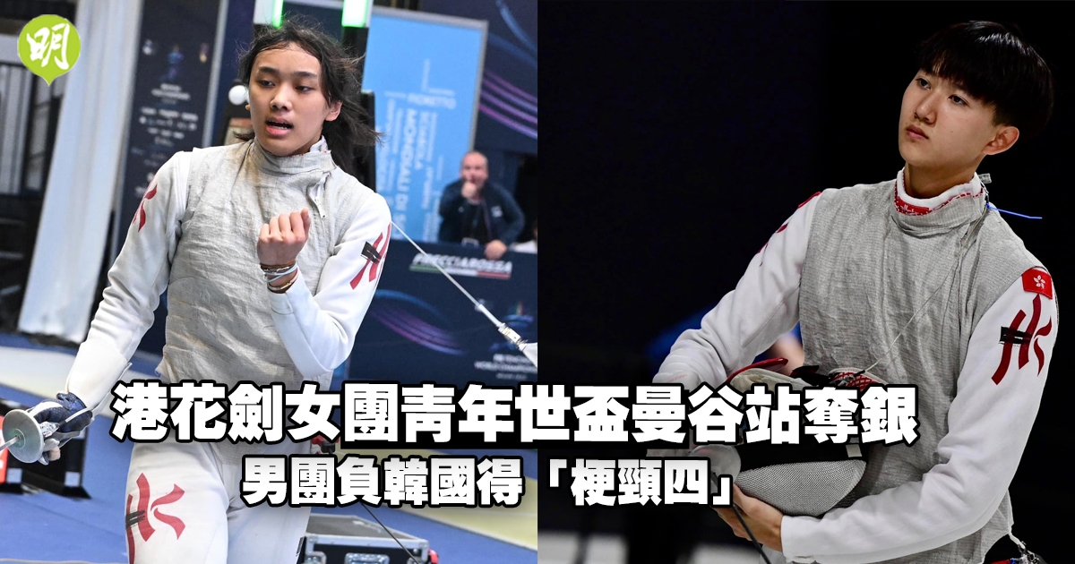 香港花劍隊今(17日)在青年世界盃曼谷站,由陳諾思領銜的女子隊在團體賽殺入決賽,以31:45不敵意大利隊得銀牌。至於日前在個人賽摘銅的梁千雨,則伙隊友在男子團體賽得「梗頸四」。