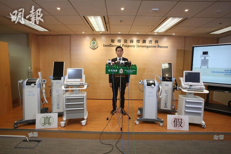 海關版權及商標一般調查組高級督察吳家俊表示,涉案美容院主要利用社交平台宣傳,個別美容院只透露所在區域,當客人提交訂金後才會透露確實地址,可謂相當警覺。今次儀器涉及兩款商標,冒牌儀器不論外觀、價錢、功能上都與正牌有分別,例如商標顔色深淺、扶手角度都有不同;根據商標持有人初步估計,冒牌儀器的輸出功能遠低於正貨,美容效果存疑。海關提醒,今次儀器涉及以射頻或超聲波直達皮膚深層的功效,若使用冒牌貨或使用不當,可能出現紅腫或灼傷,弄巧反拙。