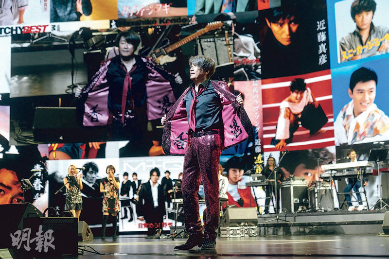 【明報專訊】日本殿堂級歌手、59歲近藤真彥(Matchy)繼2011年與香港樂迷見面後,相隔12年再跟港澳粉絲重聚,前晚首次在澳門舉行《Matchy Get Macao ~ X’mas Special Concert in Macao》演唱會,好友野村義男擔任嘉賓,彈結他伴奏。明年「登六」(60歲)的Matchy特別在西裝內印上「香港」兩字給粉絲驚喜,又以廣東話高呼:「我返嚟喇。」他獻唱舊愛梅艷芳改編的《夕陽之歌》與《夢伴》冧歌迷,聽到粉絲歡呼聲,感動得想哭,並說自己到這年紀還可以唱歌,更可到澳門開騷,感謝粉絲一直不離不棄。