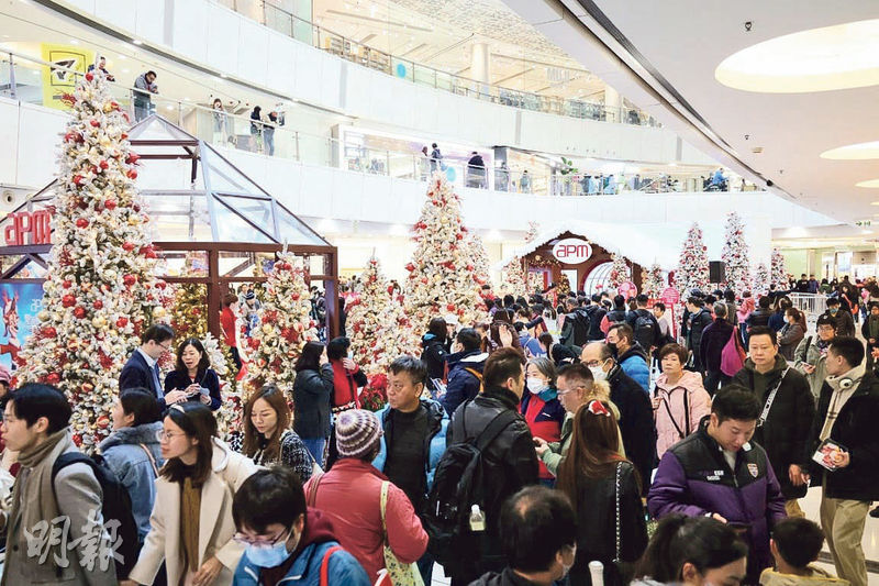 【明報專訊】過去周末是本港和內地今年初恢復通關後首個聖誕零售旺季,新地(0016)表示, 旗下15個大型商場,主要包括觀塘apm、大埔超級城、銅鑼灣wwwtc mall、元朗廣場和上水新都廣場等,4天聖誕長假(23日至26日),人流按年升20%至30%,營業額較去年增20%。