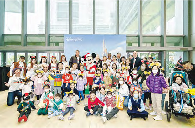 迪士尼義工隊亦為多間非牟利機構同學校舉辦聖誕派對,包括為逾100名香港兒童醫院病童舉辦《魔雪奇緣》派對,有攤位遊戲同製作手工等,著上聖誕老人服飾嘅米奇老鼠現身與病童跳舞互動。華特迪士尼公司另向香港兒童醫院慈善基金捐贈50萬元,用作提升醫院病人服務與體驗,包括為病童及其家人提供音樂與藝術活動。