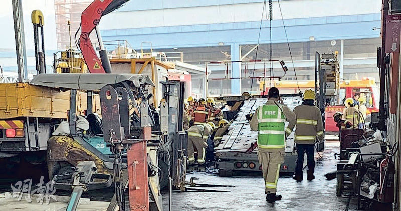 【明報專訊】從事回收的男工人昨日於赤鱲角機場維修工場,以風煤切割一座廢棄的裝卸升降台時,「台面」突然塌下,他被夾於鉸剪支架。消防及大嶼山醫院流動醫療隊到場協助,事主被救出後證實死亡。勞工處派員到場調查,並發出「暫時停工通知書」,停止升降台拆卸工作。