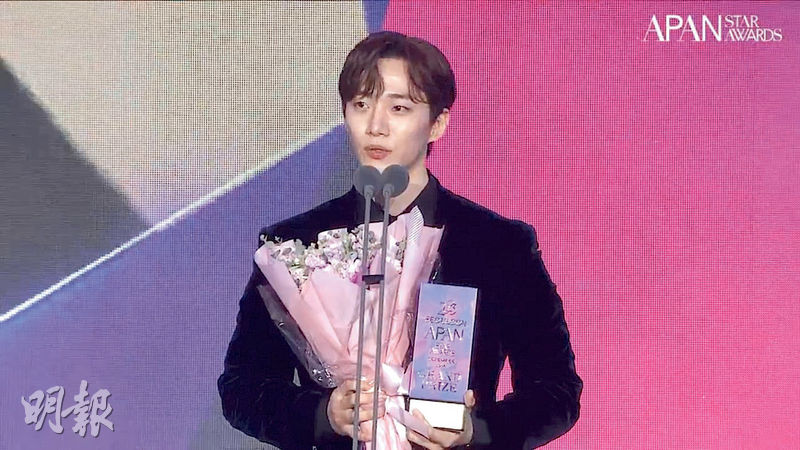 【明報專訊】表揚過去一年優秀韓劇及演員的第9屆APAN Star頒獎禮,昨晚在首爾東大門DDP舉行。《衣袖紅鑲邊》男星俊昊憑《歡迎來到王之國》拿下人氣獎、國際明星、最佳角色、最佳情侶,以及至高榮譽大獎,合共5獎成為大贏家。俊昊在台上表示沒有想過得到至高榮譽大獎,非常感謝大會,「《歡迎來到王之國》是一齣讓觀眾不用想太多、開心觀看的劇集,為了帶給觀眾快樂,台前幕後均很努力,我是代表他們得到這個獎。」俊昊稱一直努力透過電視劇為觀眾帶來幸福,並不忘感謝拍檔潤娥及經理人。