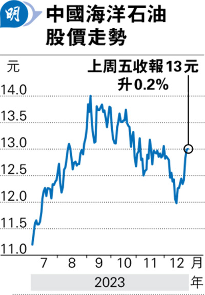有投資者認為,自以巴衝突以來,中東局勢持續混亂,加上紅海問題,有機會進一步擾亂能源及海運供應鏈,令油價及運費上升,於是與石油及航運相關的板塊,近期也出現升勢,例如「三桶油」中的中海油(0883),由去年12月最低11.88元,至上周五收報13元,升幅約9%;中石油(0857)也同樣由去年12月低位升約9%。