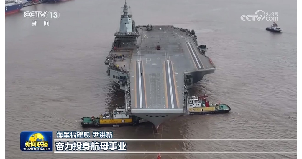 出海在即,中國海軍第一艘電磁彈射航母「福建艦」昨晚(2日)亮相央視,三條電磁彈射軌道公開露真容。軍事專家認為,影片能夠看出福建艦現已進入到建造尾聲,福建艦基本已成型,意味福建艦距離海試的時間愈來愈近。