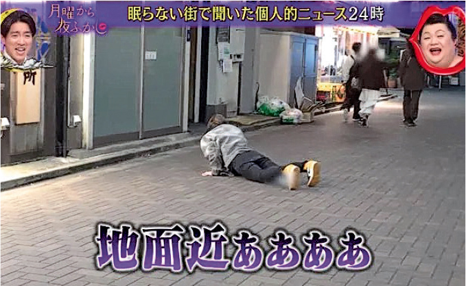 晚上10點後,便屬於泥醉時分。你會看到非常多走路像喪屍的人,他們高舉雙手,見人就抱,還會高聲吼叫。聽得最多是高分貝的「バカ!」(笨蛋!),在我看來,日語就算醉了還是很斯文。除此之外,值得留意的還有兩步一「pizza」。最常見是面朝下、坐得像壞掉玩偶的人,打開到70度左右的兩腿之間有一灘pizza。那是什麼不用說也明白吧。有次玩到早上去坐電車,沿路地上除了七歪八倒的人(全年齡層都有),還有pizza、黑色垃圾膠袋山和很多烏鴉。走在開始日出的甲州街道,關了音響的牛郎宣傳貨櫃車無聲高速駛過,2023年頭髮還是gel到一支支的牛郎踏着單車面無表情地下班,整條街道沐浴在清晨的靜謐中,烏鴉與喪屍都有泛着柔光的金色輪廓。我清醒得很,覺得這個畫面很黐線。