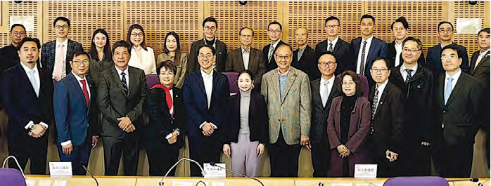 周賢明與屬於民建聯嘅西貢區議會前主席吳仕福一齊旁聽首次大會,會後二人同新任主席民政專員馬瓊芬同埋全體議員合照。