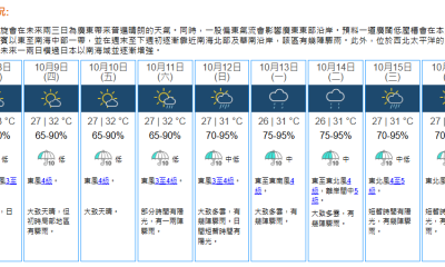 即時熱點 天氣|天文台:大致多雲短暫有陽光 最高21°C (08:38) 發佈於 2 年 前 2024 年 1 月 8 日 By 明報 上午8時20分,天文台錄得18.2°C,相對濕度73%。東北季候風正影響廣東沿岸,同時一道雲帶正覆蓋該區。本港地區今日(8日)天氣預測大致多雲,日間短暫時間有陽光,最高氣溫約21°C,今晚有一兩陣微雨,吹和緩至清勁東風。展望明日(9日)大致多雲。本周中後期部分時間有陽光,早上天氣清涼。(天文台) 相關文章:天文台天氣天氣速遞編輯推介 Up Next 短片:大衛寶兒77歲生忌 巴黎「大衛寶兒街」揭幕 (13:18) 不要錯過 流水響、大枕蓋郊野公園自然導賞 即日至2月舉行 (11:03) 繼續閱讀 贊助商 猜你喜歡 天氣|天文台:天晴酷熱最高33°C 局部地區有驟雨 (08:14) 天氣|天文台:周三天晴酷熱 最高33°C (21:00) 水利部和中國氣象局發布山洪預警 (22:56) 天氣|天文台:大致多雲 最高氣溫32°C (08:13) 中國北方局部明起降溫10℃以上 青藏有暴雪 (19:35) 天文台發出一號戒備信號 (15:40)