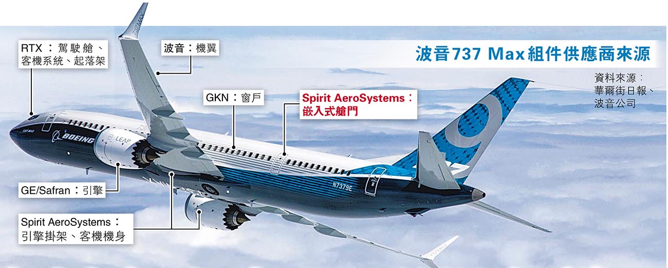 【明報專訊】美國一架波音737 MAX 9客機本月5日發生半空「甩門」事故後,令人關注飛機品質監控有欠嚴謹。波音一如其他美國飛機製造商,愈來愈多將複雜零部件的生產外判以節省成本,有波音工程師早已警告外判策略的風險。《華爾街日報》(WSJ)上周六(13日)報道,為涉事客機安裝嵌入式艙門的公司因MAX 9全球停飛近兩年及新冠疫情而裁員,其後當訂單增加時人手不足,趕工生產亦令產品質素參差,但質檢員憂慮提出太多問題會被公司報復。
