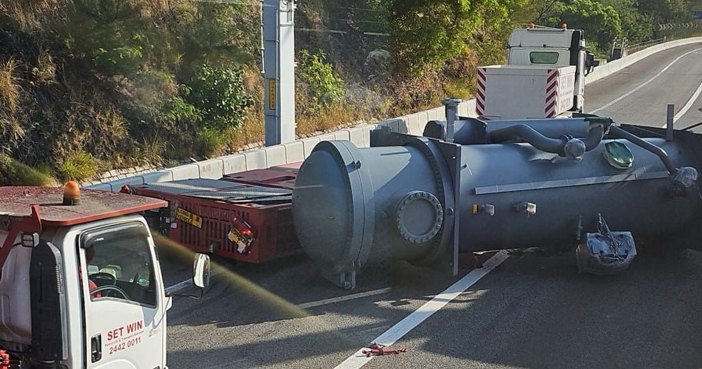 即時港聞 屯門公路大型貨物掉下阻路 (10:42) 發佈於 2 年 前 2024 年 1 月 16 日 By 明報 今早(16日)9時23分,一輛運載大型貨物的貨車沿屯門公路往荃灣方向行駛,駛至小欖時,有金屬貨物從拖架上跌下,橫亘兩條行車線。該貨物約6米長、1.5米闊,重約20噸,約3米乘5米路面損毁。 受意外影響,屯門公路往九龍方向近小欖的部分行車線一度封閉,及後有大型吊臂車及多名工人到場,以鐵鏈將組件吊起,重新放上拖架運走,該段屯門公路在下午一時許逐步解封。 相關文章:交通意外編輯推介 Up Next 李家超指危害國安風險「日日都存在」 23條立法愈快愈好 (10:36) 不要錯過 亞洲金融論壇下周舉辦 東盟中東講者增 李家超:利用機會推廣盛事經濟 (10:49) 繼續閱讀 贊助商 猜你喜歡 九旬翁米埔遭私家車撞斃 司機涉危駕被捕 (10:38) 薄扶林道3車相撞 至少12人受傷 (10:19) 的士長沙灣失控撞欄 老婦一度被困 司機涉危駕被捕 (16:19) 柴灣環翠道3車追撞 69歲私家車司機昏迷送院 (23:31) 豐物道貨車溜前 司機一度被困 涉酒駕被捕 (17:32) 將軍澳兩車迴旋處相撞 的士翻側司機一度被困 (17:02)