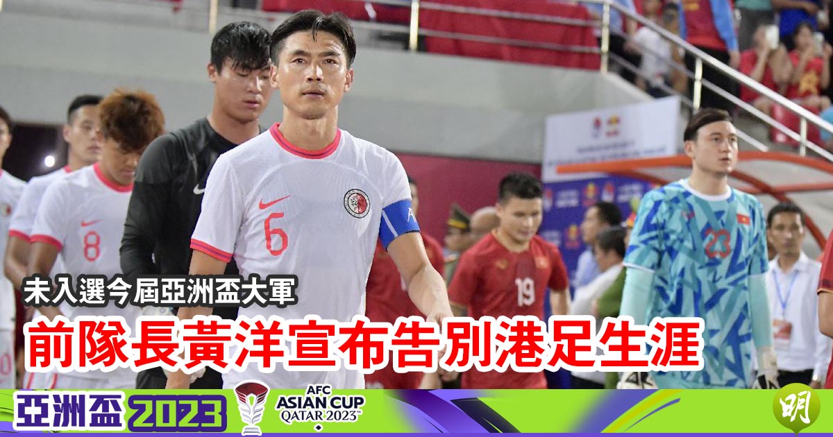 香港足球代表隊今晚(14日)10時半將迎來56年來首場亞洲盃決賽周賽事,在C組首仗硬撼阿聯酋隊。未有入選大軍的40歲前隊長黃洋,賽前在社交網宣布告別國際賽生涯,留下上陣71次、攻入1球的數據。他在帖文寄語大港腳「保持專業,渴求進步;每一場比賽踢出鬥志,球迷感到被尊重,香港足球就保有持續向上發展嘅希望」。