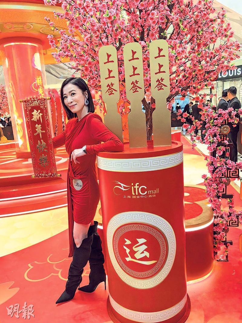 【明報專訊】佘詩曼日前在無綫《萬千星輝頒獎典禮2023》成三料視后,人氣強勁。穿紅色連身裙的她昨日到上海出席商場「龍騰飛躍耀新春」開幕儀式,席間展現「女王」風範,說出劇集《新聞女王》金句與粉絲玩遊戲,炒熱全場氣氛。佘詩曼表示開心到上海,賣口乖說最喜歡的上海菜是熏魚、油爆蝦、蹄膀、烤麩等。