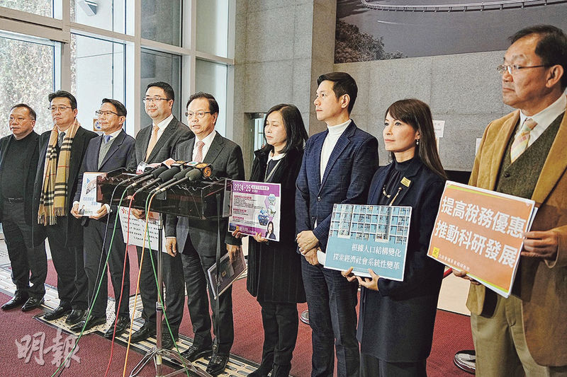 【明報專訊】財政司長陳茂波下月發表新一份《財政預算案》,昨日會見「C15+」立法會議員。多名議員表明反對政府開徵新稅項,選委界別議員江玉歡促請當局盡快全面撤銷樓市「辣招」,又認為面對政府財赤,應考慮推遲耗資較高但短期收益低的大型投資項目。