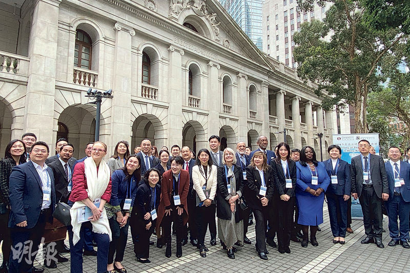 有嚟自波蘭嘅律師組織同Emily講,希望嚟觀摩科技對法律行業影響,話香港喺智能科技等方面發展較快。加州律師協會國際移民小組主席Margaret Francisco首次嚟香港,話無估到咁多人嚟,好期待結識唔同地方律師組織代表。