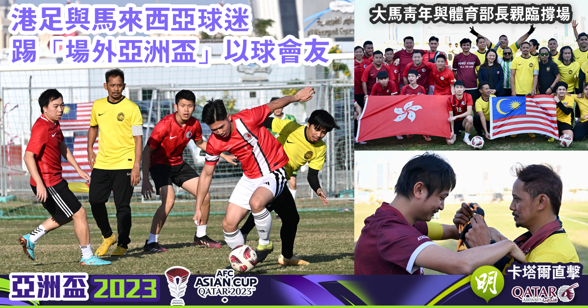 一班遠赴卡塔爾支持港足的香港球迷,於港足在亞洲盃決賽周C組對巴勒斯坦隊賽前,今(22日)在當地一個體育公園球場與馬來西亞隊的球迷,踢一場「場外亞洲盃」的亞洲球迷友誼賽。