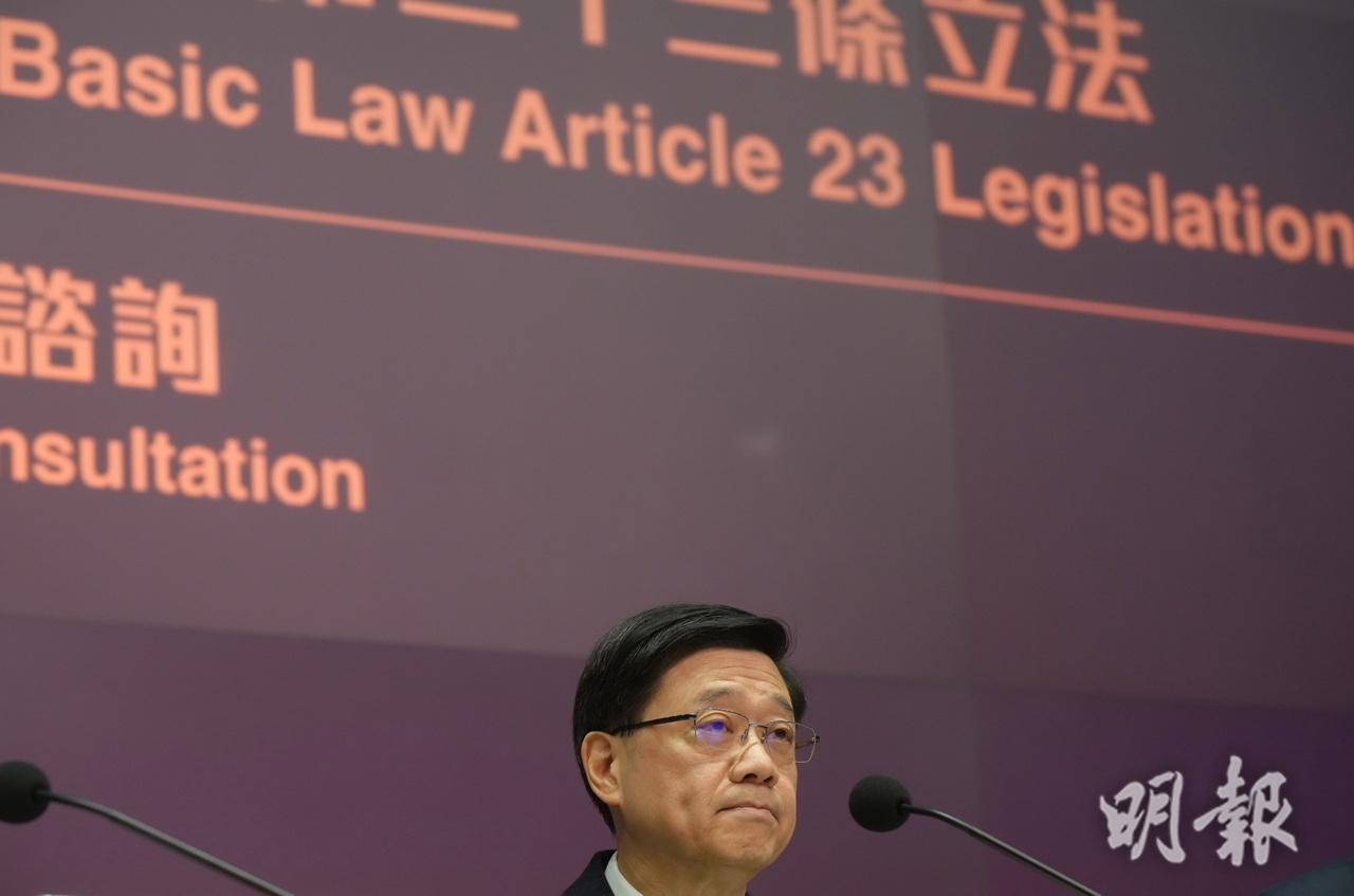 政府由今日起展開有關《基本法》23條立法的公眾諮詢,直至2月28日,諮詢期較2003年23條立法時短。特首李家超指,諮詢文件內容詳細,加上政府將大力解說,相信諮詢期安排合適,又指立法有助創造安全穩定環境,有利經濟發展及人才流入,亦不同意《港區國安法》實施後,對本港有負面影響。