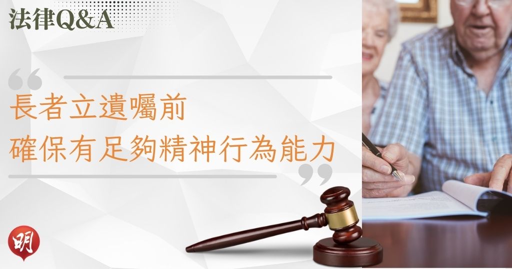 樂齡.法律Q&A|律師:長者立遺囑未必靠律師 須確保有足夠精神行為能力 (09:24)