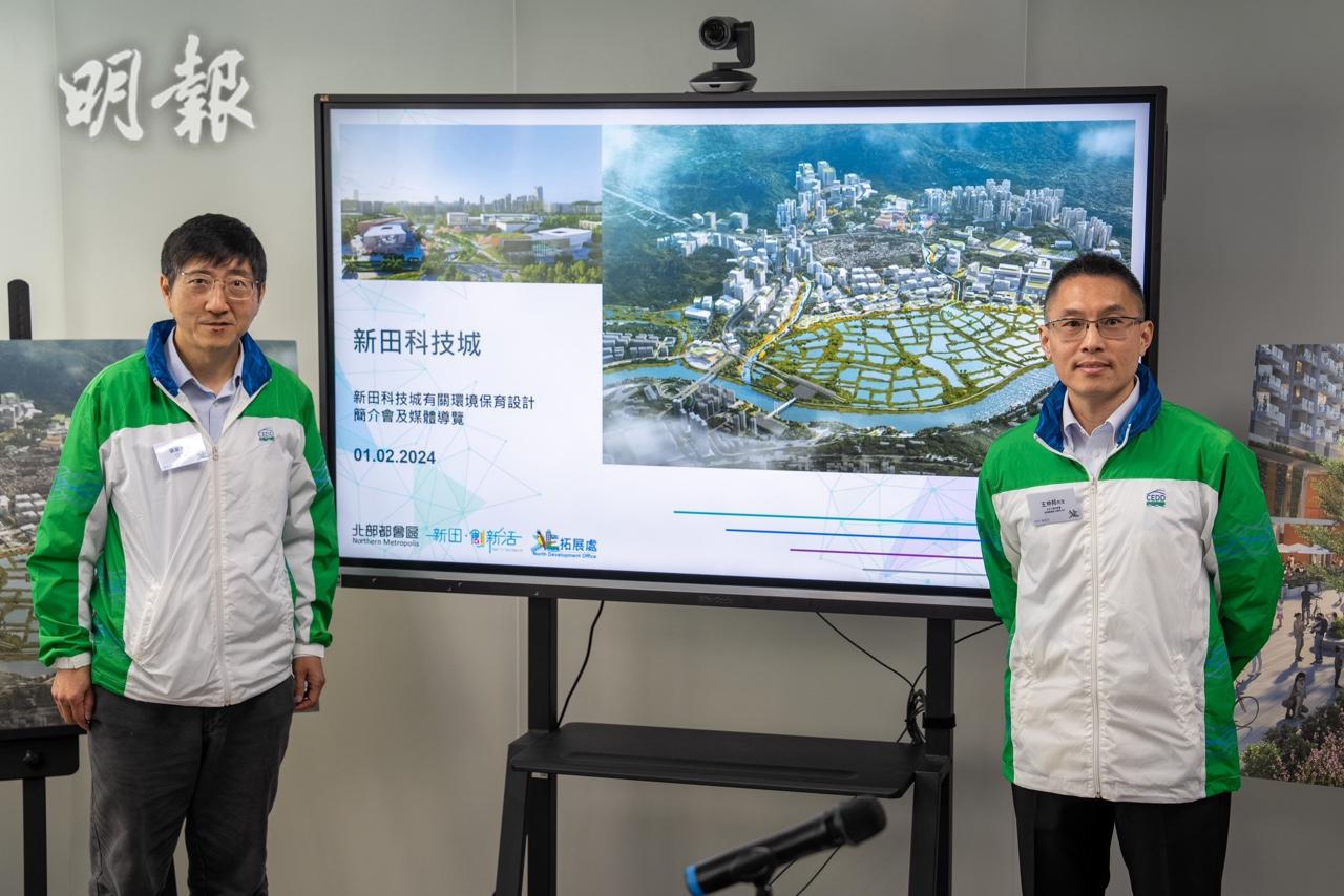 土拓署今就新田科技城有關環境保育設計舉行簡介會,土拓署北拓展處長張家亮表示,兩條排水道旁將會打造成休憩用地,指該用地是比較平坦的斜坡,大雨時會變成蓄洪設施;沒有下雨時則可供市民使用,提升親水文化。另署方亦計劃興建多項城鄉自然共融的措施,例如興建大型表演場地、圖書館、游泳館等。他強調,土拓署發展新田科技城時會秉持「發展與保育並存」的理念。