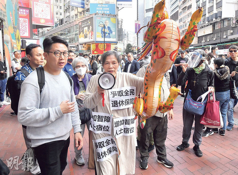 【明報專訊】社運人士「女長毛」雷玉蓮昨午原計劃與3人從銅鑼灣遊行至金鐘,要求政府在《財政預算案》落實全民退休保障及增加智障者院舍宿位。遊行甫開始,有兩人因戴口罩,被便衣警察要求除下或出示「醫生紙」,否則不得繼續遊行。最終只有雷玉蓮與另一人完成遊行。雷說警方曾稱會依據「禁蒙面法」終止遊行,而上月在油尖旺遊行時有一人戴口罩,但未被要求除下。