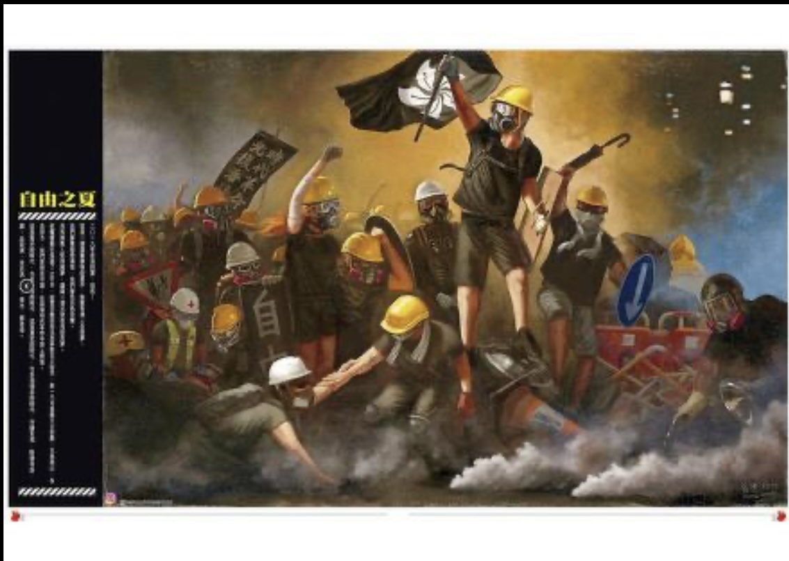 至於英文版內容,陳指她沒有參與翻譯事宜,應是外聘人員幫忙,由執行總編輯林文宗監督。另一版以「全港大三罷」為主題的圖片,相中市民手持「反送中」黃底黑字直幡,陳記得張劍虹應黎要求寫毛筆字,「好似就係呢啲」。