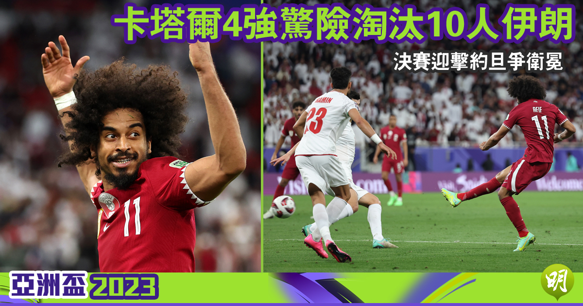 亞洲盃今晨(8日)上演峰迴路轉的4強比賽,結果佔主場之利的衛冕之師卡塔爾隊,藉上屆神射手艾姆斯阿里在82分鐘建功,以3:2反勝末段少踢一人的西亞勁旅伊朗隊,將在下周日晚決戰「黑馬」約旦隊。今屆已為卡軍入5球的翼鋒艾菲夫賽後稱「希望最好的仍未降臨」,暗示目標蟬聯冠軍。