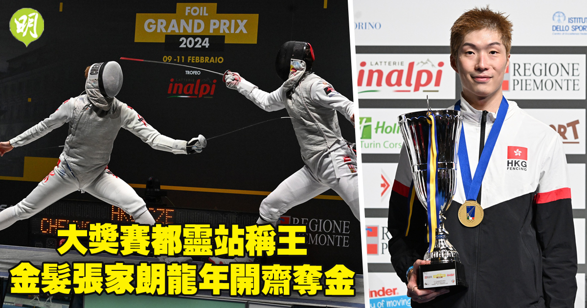 龍年伊始,香港劍擊壇再傳捷報!繼世界一姐江旻憓昨揚威女重劍世界盃巴塞隆拿站後,染了一頭金髮的東京奧運冠軍的名將張家朗,今晨(12日)在男子花劍大獎賽都靈站連過3關後,於4強戰碰「剋星」美籍好手伊堅連追4分兼贏「決一劍」,然後在決賽勇挫捷克籍劍手曹賓尼治稱王,生涯亦首度在大獎賽奪金。