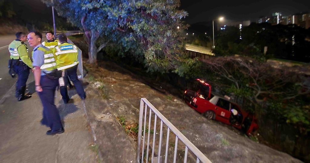 凌晨3時許,一輛載有乘客的士沿清水灣道往西貢方向,駛至清水灣道303號對開,突然失控越線,剷上行人路,撞毀約2米長鐵欄,衝落約5米深山坡,車頭撼向大樹始停下,司機及乘客自行爬出車外。救援人員接報到場,48歲姓黃男司機及23歲外籍男乘客,分別手及腳傷,清醒送院治理。據悉,有人報稱因閃避動物釀成意外,警方正調查事故原因。