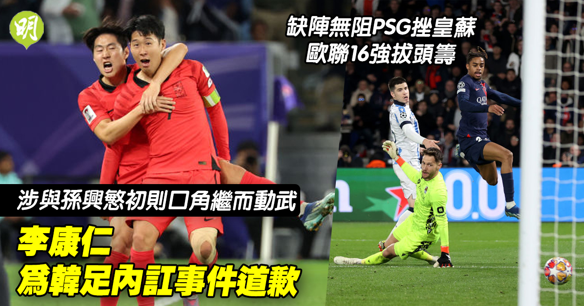 歐聯|李康仁為韓足內訌事件道歉 缺陣無阻PSG挫皇蘇16強拔頭籌 (16:00)