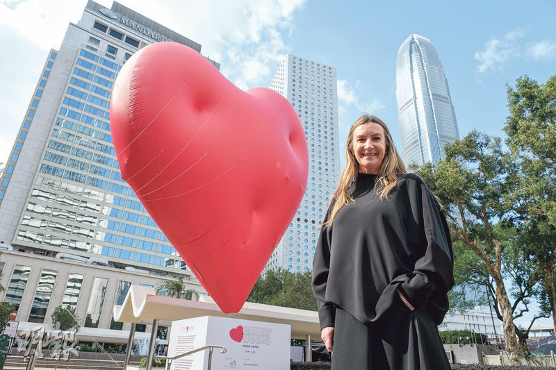 【明報專訊】巨型紅心設計裝置「Chubby Hearts」從倫敦「飄洋過海」,懸浮在香港各處,在高樓大廈映襯下靈犀顯眼,為城市景觀帶來另一抹紅。裝置隨天氣升高降低,搖曳在風中,就似跟着城市節拍擺動,牽引觀眾。本報專訪Chubby Hearts設計師及藝術家Anya Hindmarch,了解她背後的設計理念。