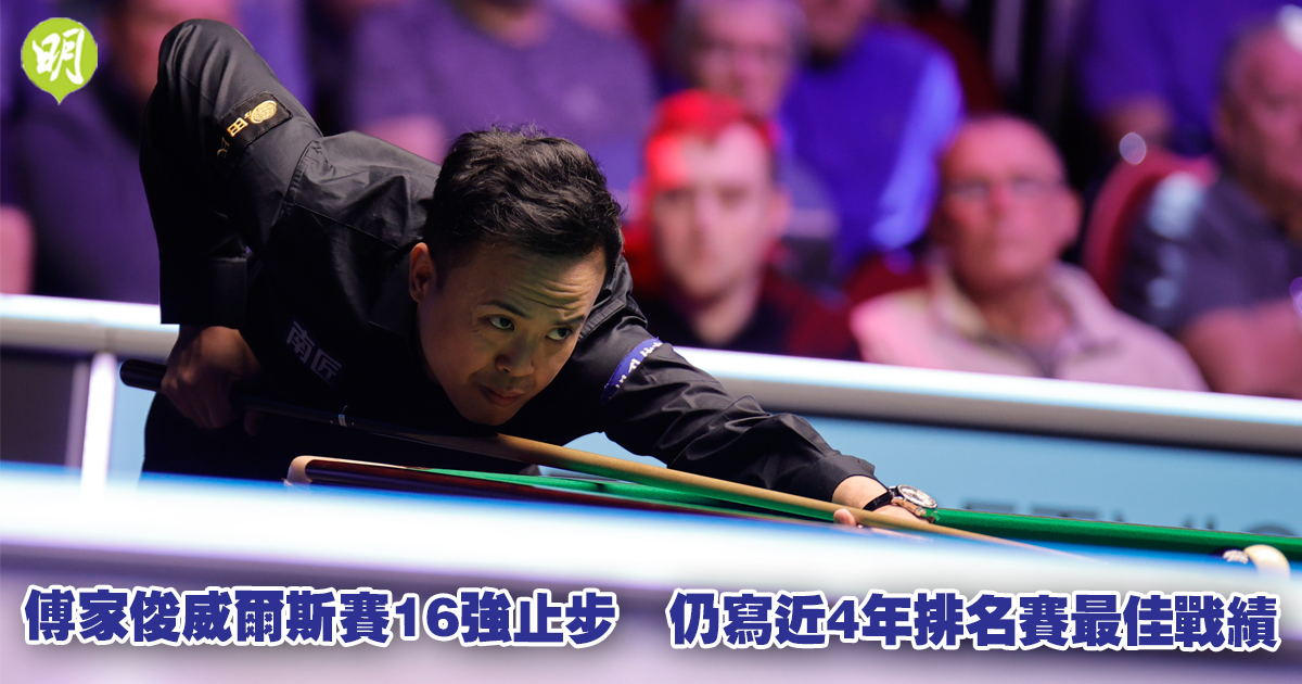 香港桌球天王傅家俊(Marco)在威爾斯公開賽持續好表現,他昨晚(15日)在次圈連轟兩棒「破百」,擊退東道主球手丹尼爾韋爾斯,相隔4年再闖排名賽16強,惟今晨(16日)不敵奧當尼爾止步。