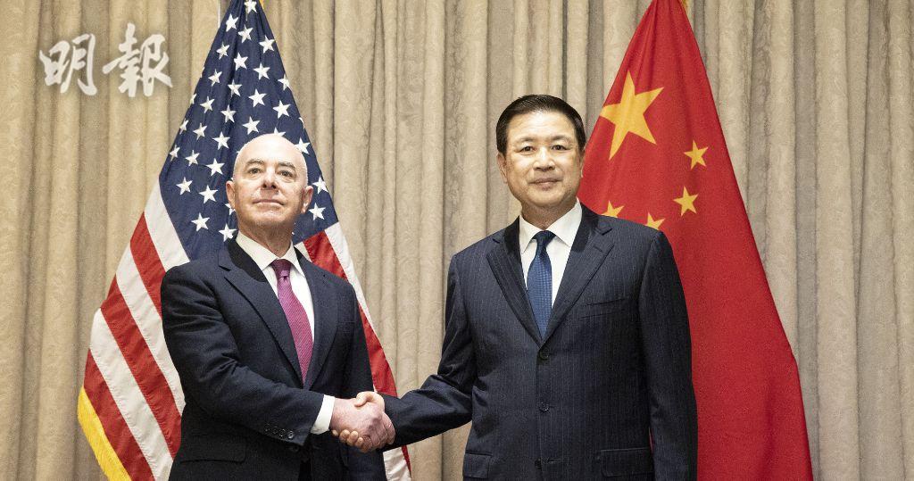 中國公安部部長王小洪周日(18日)在維也納與美國國土安全部長馬約卡斯會晤。王小洪要求美方停止無端滋擾盤查中國留學生,確保中國公民享有公平入境待遇和充分尊嚴;採取切實有效措施,確保中國駐美外交領事機構和人員安全;並取消針對中國相關機構和人員的簽證限制。
