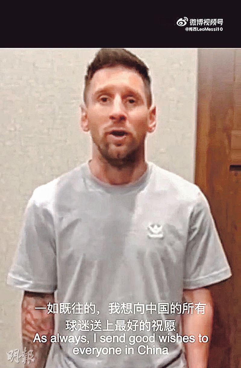 美斯昨晚在個人微博帳戶「梅西LeoMessi10」發布一段2分20秒的片段,他以西班牙語解畫,片段附上中英文字幕。他稱已讀到並聽到很多在香港比賽後被提及的說話,希望透過片段說出真實情况,「希望大家不會再繼續看到不實的消息了」。他說聽到有人說他因為政治或其他原因不想參賽,稱「這些都不是真的,若真是這樣,我甚至不會去日本,或者像之前那樣多次訪問中國」。