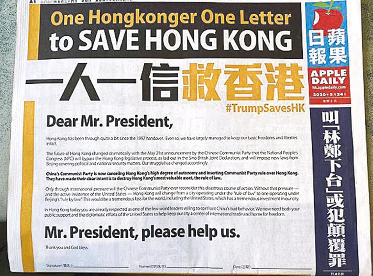 不認同以《蘋果》名義籲美關注港國安法 與黎商討 陳沛敏:黎智英堅持一人一信行動